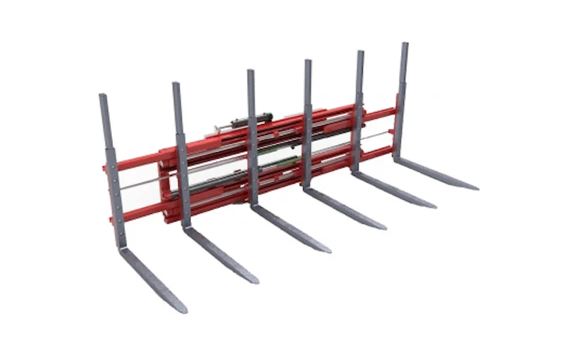 - Maksymalna elastyczność: Urządzenie to umożliwia operatorowi hydrauliczne rozsuwanie wideł poza obrys urządzenia, co ma zasadnicze znaczenie dla transportu szerokich towarów, takich jak profile lub panele betonowe.