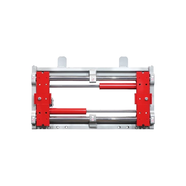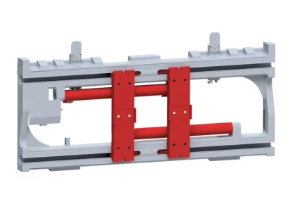 Pozycjoner pozwala dopasować rozstaw wideł z kabiny, więc podjęcie palety i ładunku idzie szybciej i bez poprawek.