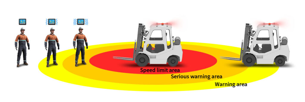 • Brigade (RFID i UWB) – strefy wykrywania wokół pojazdu i ostrzeganie operatora oraz pieszego (znacznik/alert), wsparcie kontroli dostępu do wybranych stref.