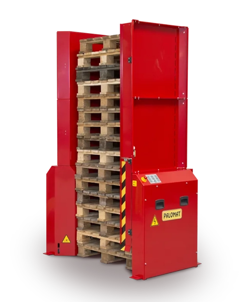 PALOMAT Stand Alone to stacjonarny magazynek palet, który automatyzuje sztaplowanie i rozsztaplowanie pustych palet na poziomie posadzki. Urządzenie porządkuje strefę pracy i eliminuje ręczne dźwiganie palet, dzięki czemu poprawia ergonomię i bezpieczeństwo. Dobrze pasuje do magazynu, produkcji i pakowni – wszędzie tam, gdzie regularnie odkładasz i pobierasz puste palety. Zyskujesz też bardziej płynny przepływ palet i mniej „pustych” przejazdów wózkiem tylko po to, żeby ogarnąć stosy palet.