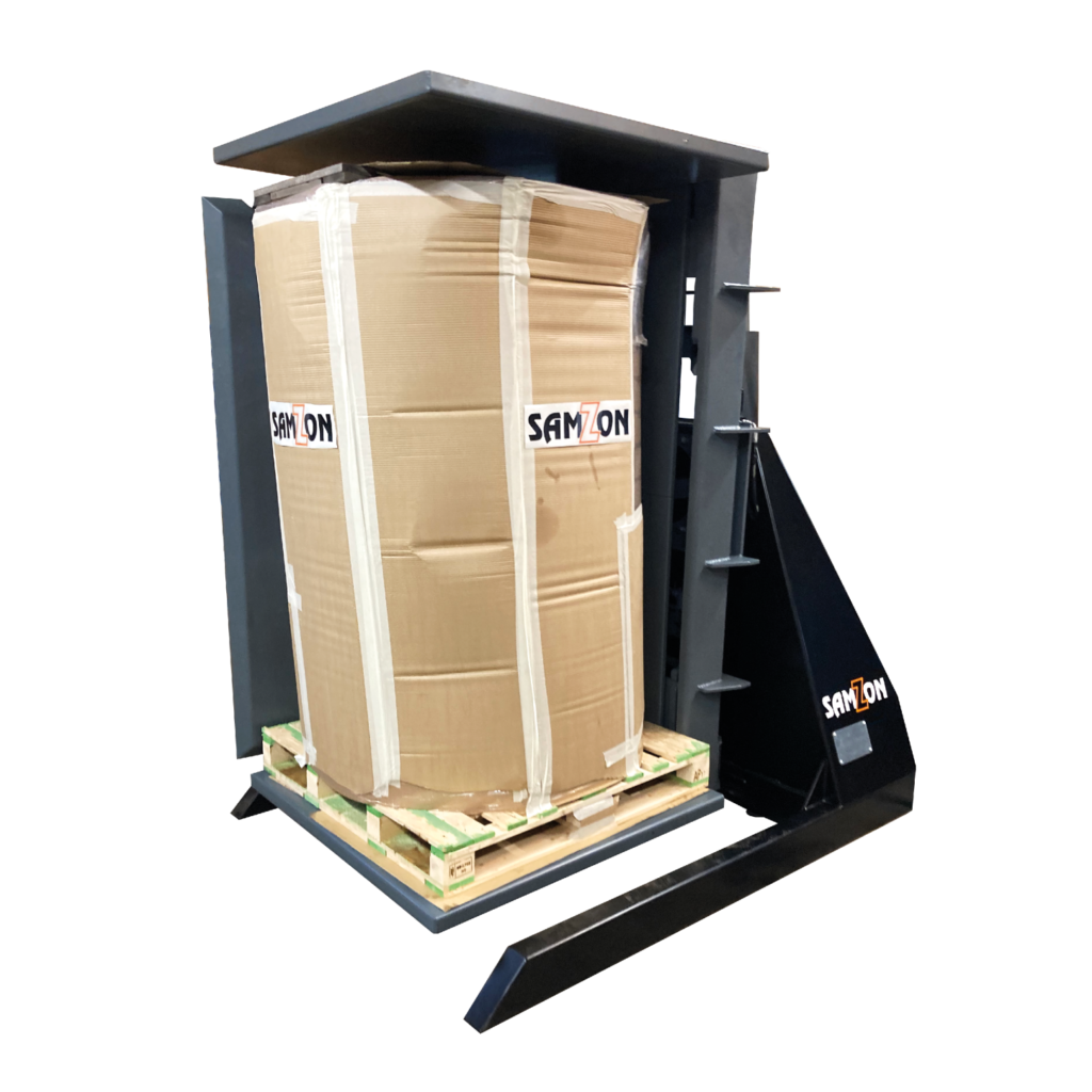 Oferujemy SAMZON Pallet Inverter – urządzenie do odwracania ładunku o 180° w kontrolowany sposób. Umożliwia szybkie operacje bez ręcznego przepakowywania: wymianę palet, usunięcie uszkodzonej palety, zmianę nośnika na wymagany w procesie albo zdjęcie/przełożenie przekładek (np. papier/karton/folie) zależnie od aplikacji. Inwerter stabilizuje ładunek, wykonuje obrót i odkłada go na nowy nośnik, dzięki czemu proces jest powtarzalny i bezpieczniejszy niż ręczne kombinowanie z towarem.